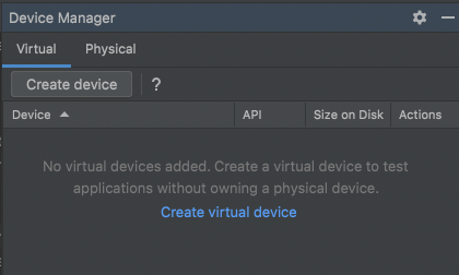 그리고 다시 Create virtual device 를 클릭해서 생성을 해줍니다.