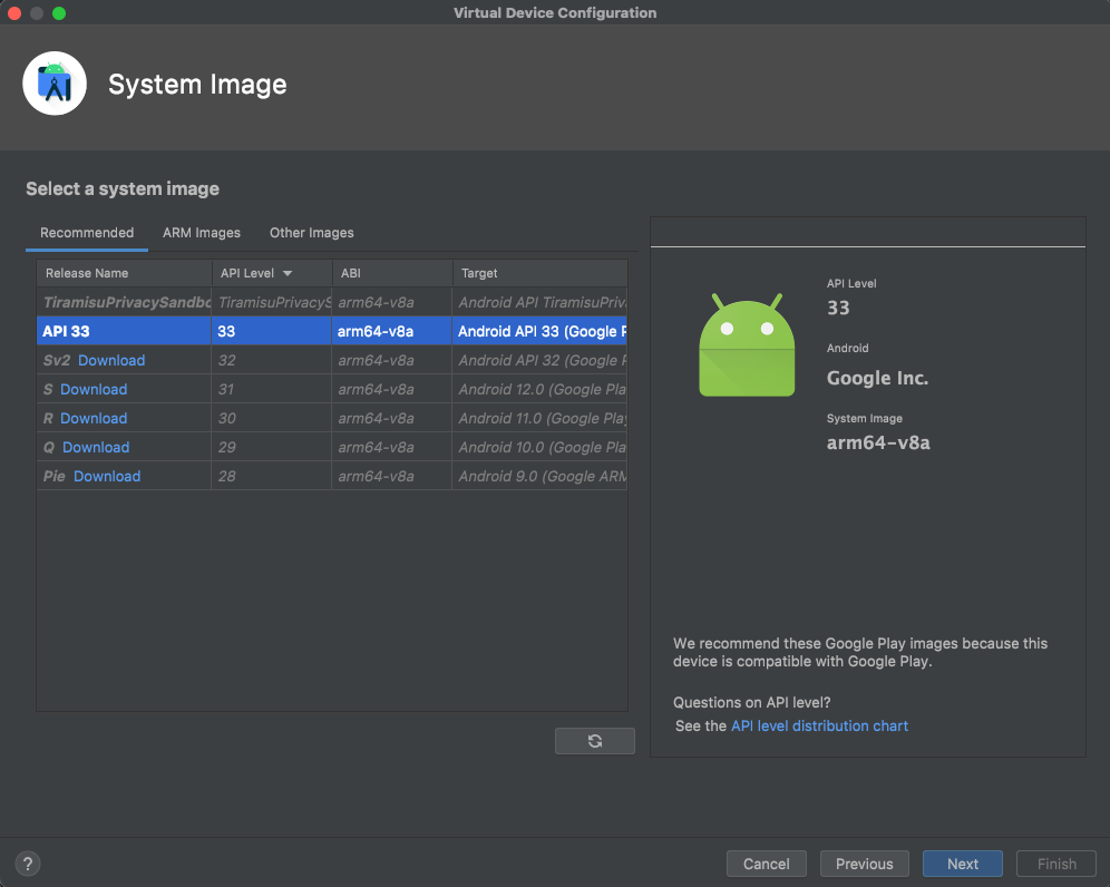 API 33을 Download 해줘야, 하단의 Next 버튼이 활성화됩니다.