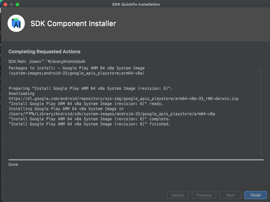 이제 API 33이 다운로드가 끝났으니, 맨 하단의 Next를 클릭해줍니다.