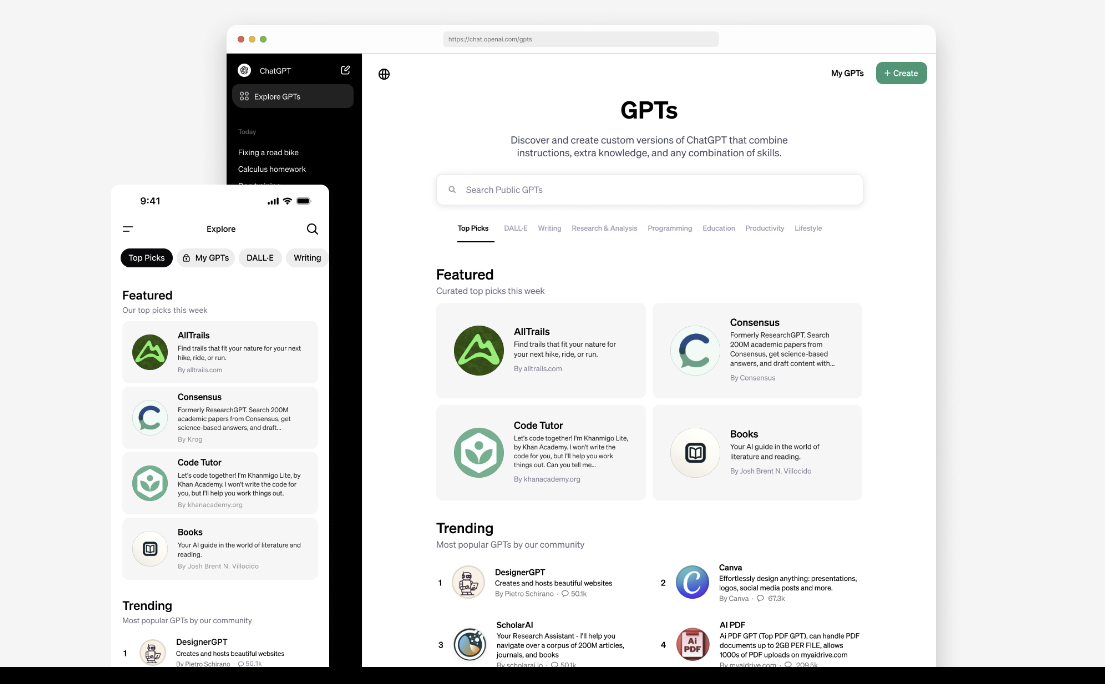 GPT 스토어는 ChatGPT Plus, Team, Enterprise 사용자를 대상으로 다양한 사용자 생성 GPT를 제공합니다. 스토어에는 파트너 및 커뮤니티에 의해 개발된 다양한 GPT가 포함되어 있으며, 매주 새로운 GPT를 특징으로 소개합니다. 또한, 사용자들은 자신들의 GPT를 스토어에 공유할 수 있으며, GPT 빌더들은 이용자 참여에 따라 수익을 얻을 수 있는 프로그램도 시작할 예정입니다. ChatGPT Team 고객은 개인화된 GPT 접근을 제공받으며, 엔터프라이즈 고객에게는 추가 관리 기능이 제공될 예정입니다.